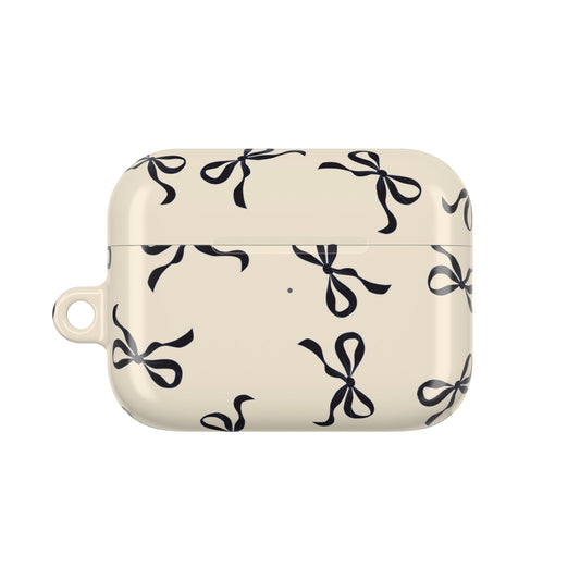 Beige and Black Bow Shockproof & Scratch-Resistant AirPods Case – Wireless Charging Compatible
