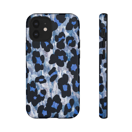 Blue & Black Leopard Print Phone Case – Bold Animal Pattern for iPhone & Samsung