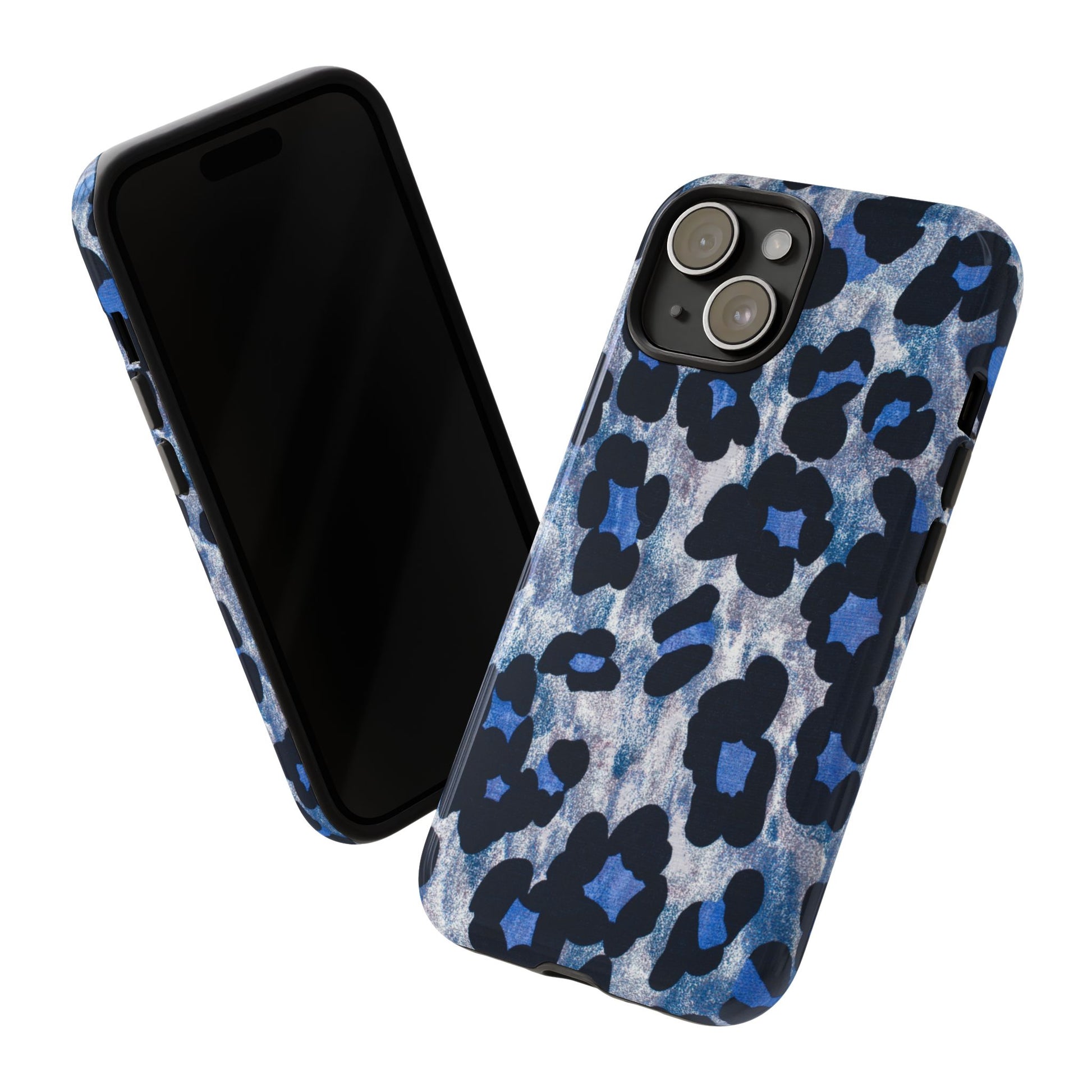Blue & Black Leopard Print Phone Case – Bold Animal Pattern for iPhone & Samsung