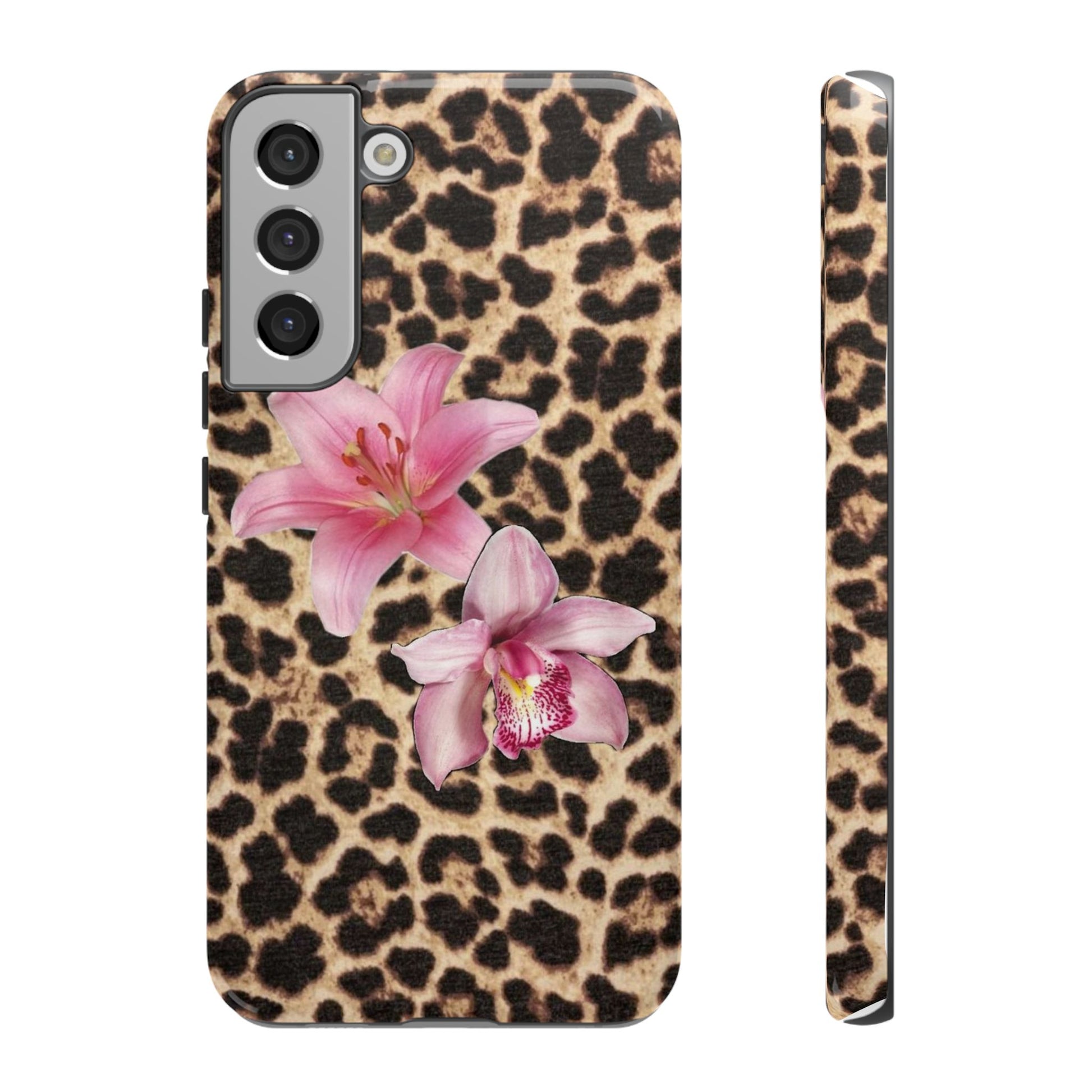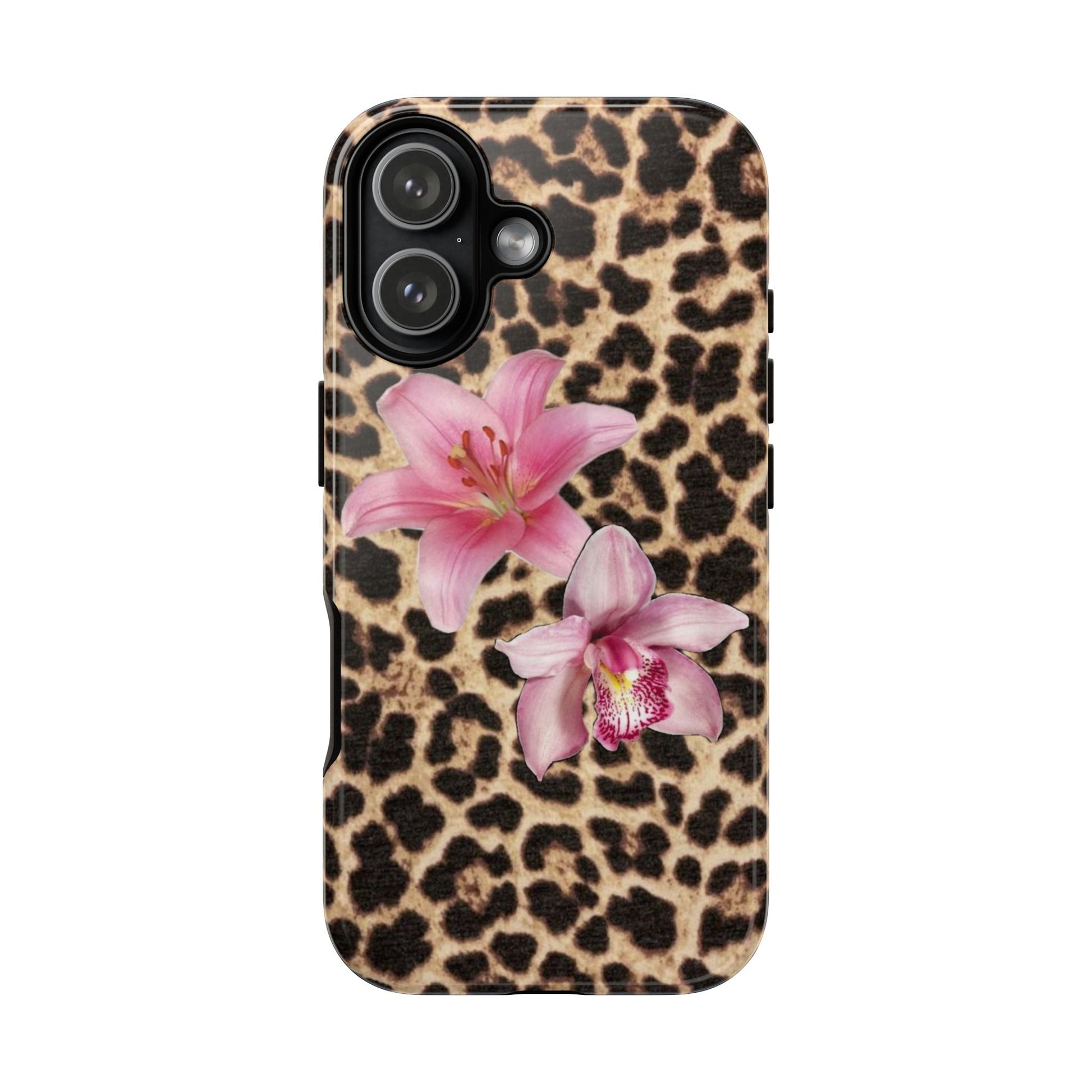 Leopard Print Phone Case with Pink Flowers β Stylish Floral Animal Design for iPhone & Samsung