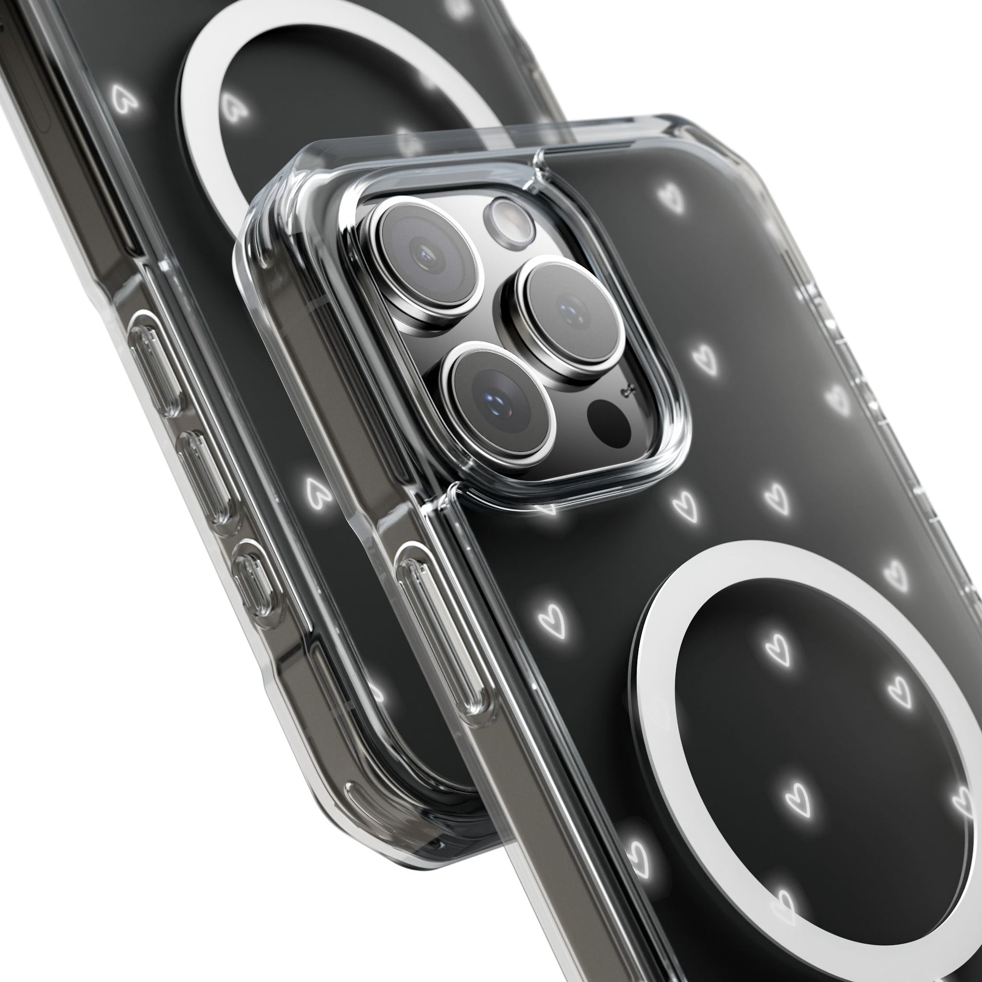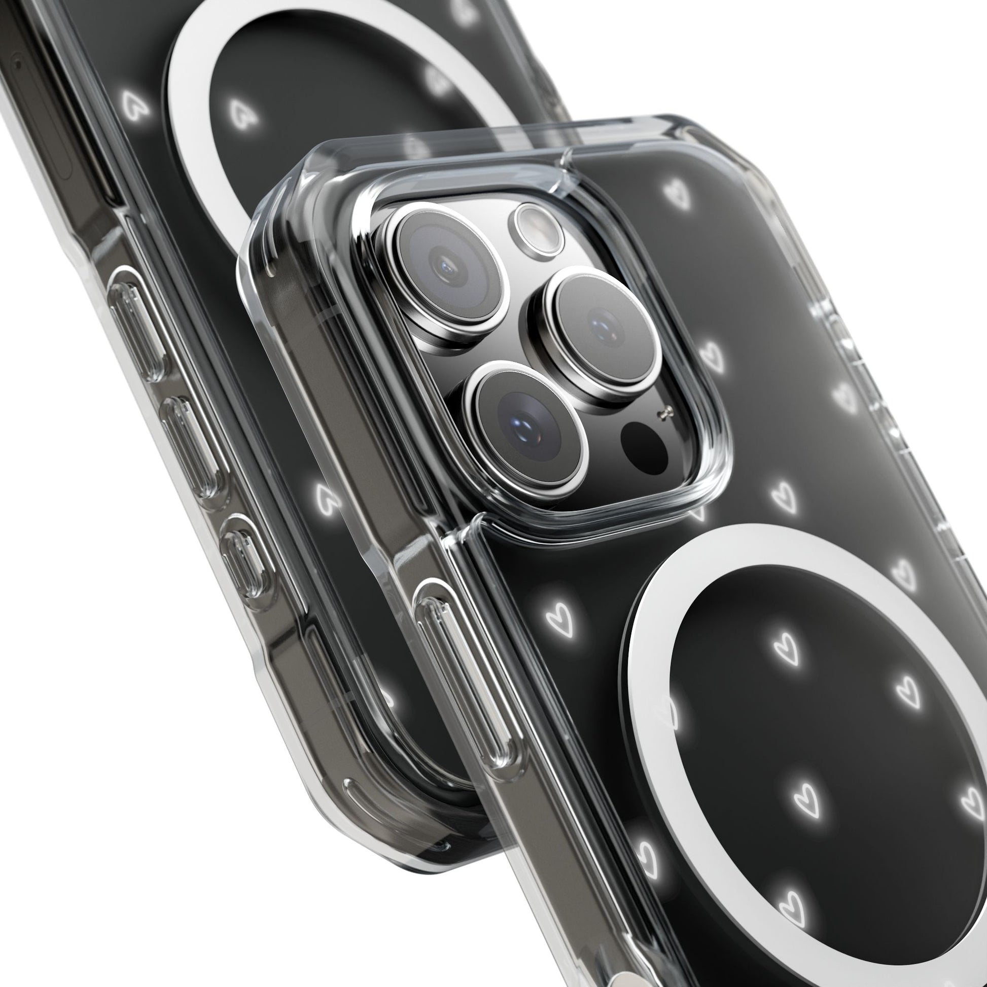 Neon Heart Bling Clear MagSafe Case